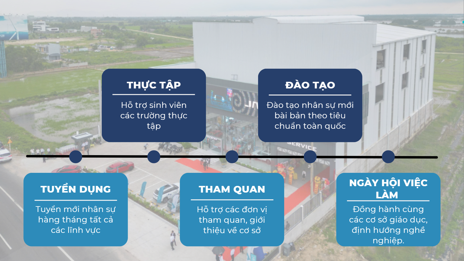Chúng tôi mong muốn trở thành cầu nối giữa doanh nghiệp và các trường đại học, cao đẳng trên địa bàn, cùng chung tay đào tạo và phát triển nguồn nhân lực trẻ cho ngành ô tô và dịch vụ hiện đại. Thông qua các chương trình thực tập, đào tạo và tuyển dụng, chúng tôi hy vọng sẽ mang đến cho sinh viên cơ hội tiếp cận môi trường làm việc thực tế, tích lũy kinh nghiệm và xây dựng nền tảng vững chắc cho sự nghiệp trong tương lai.